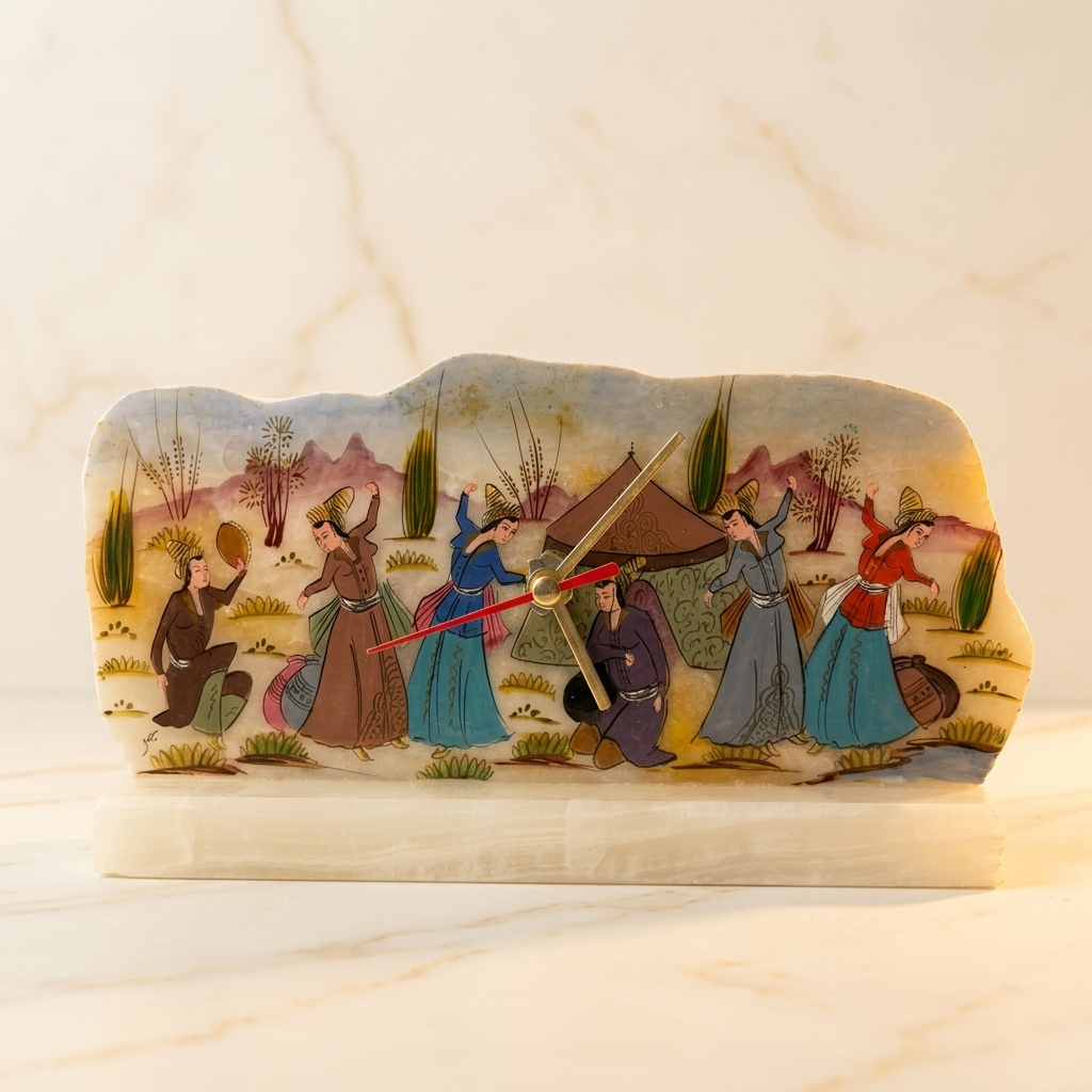 ساعت رومیزی سنگ مرمر با نقاشی مجلس بزم