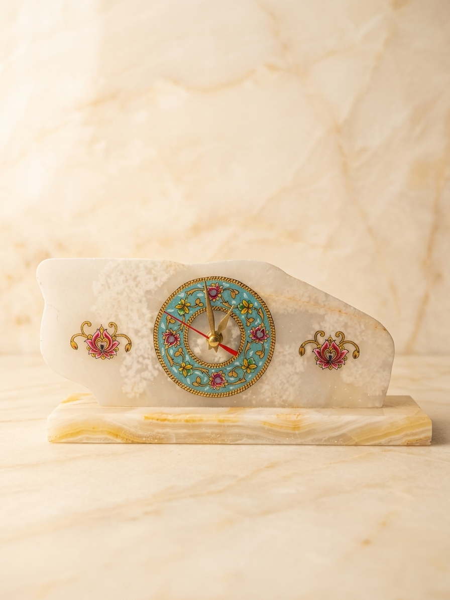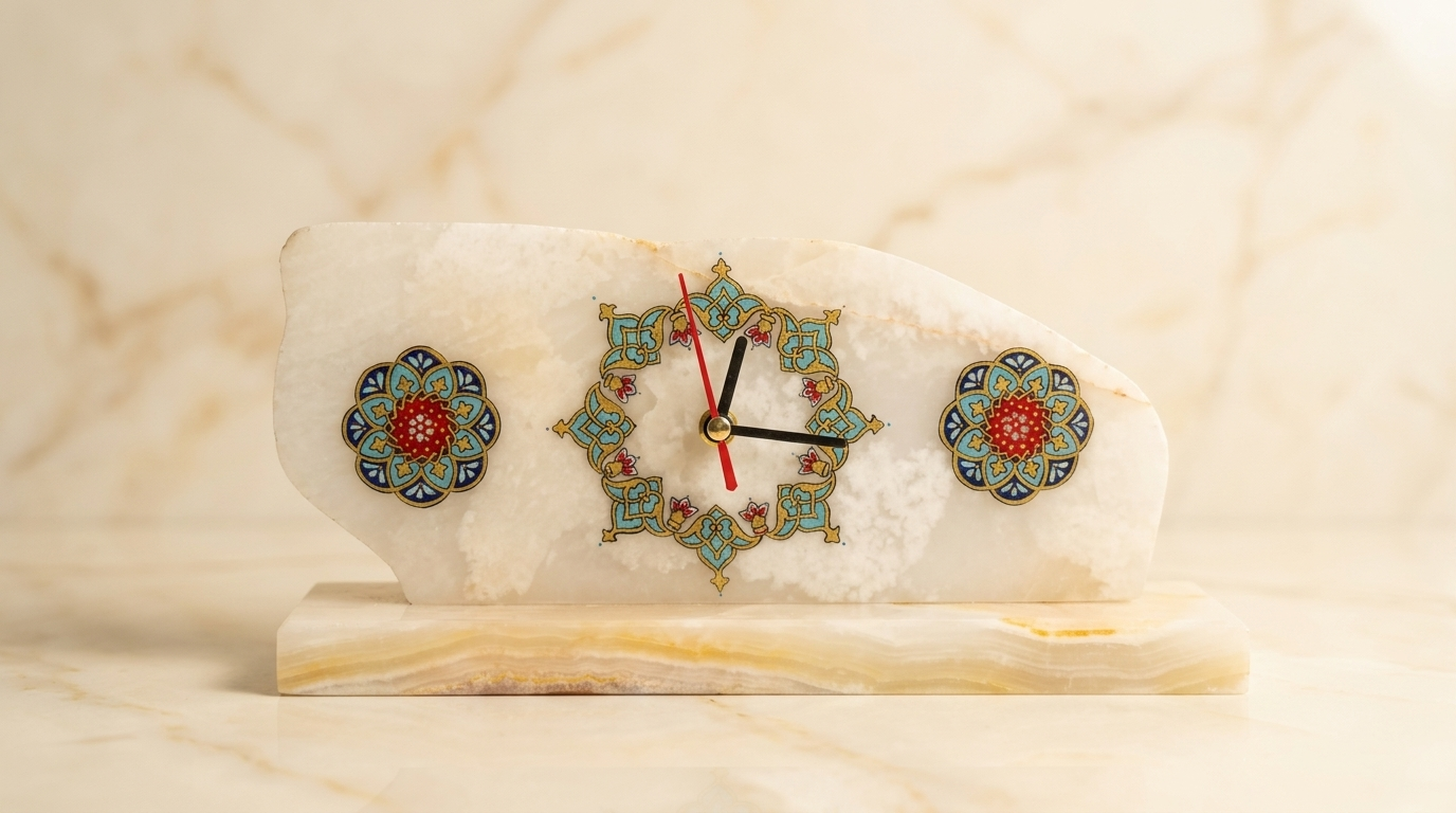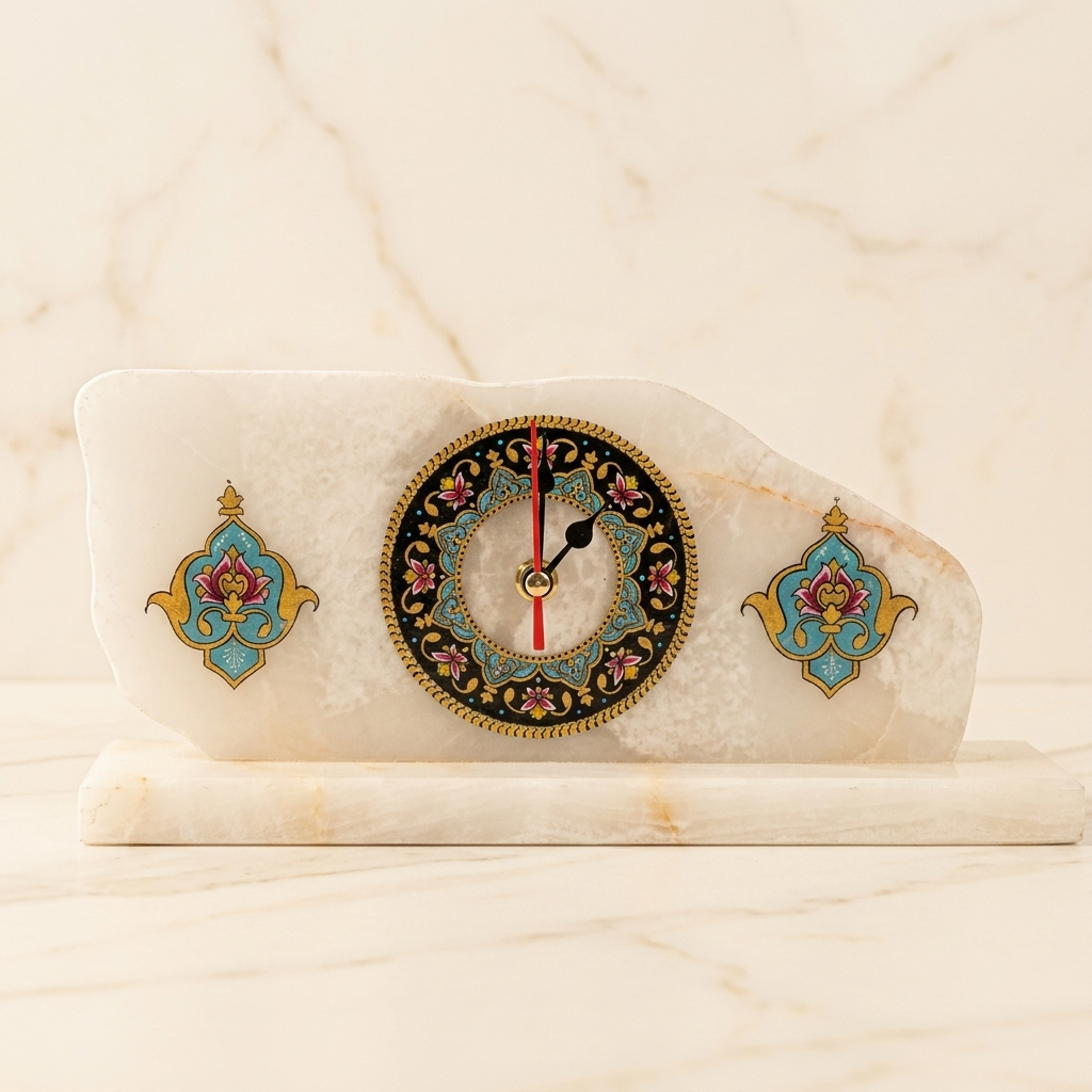 ساعت رومیزی سنگ مرمر با نگارگری تذهیب