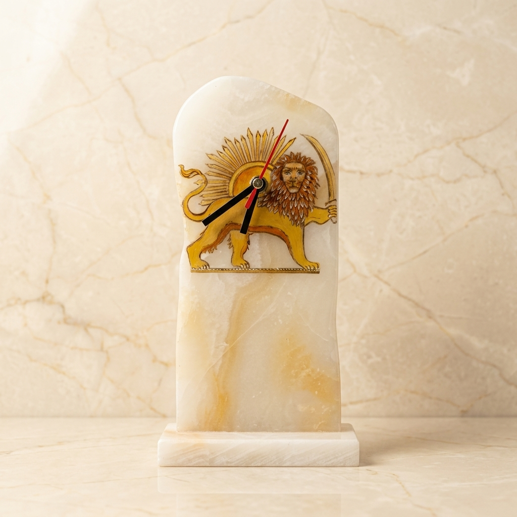 ساعت دیواری سنگ مرمر با نقاشی شیر و خورشید سنتی